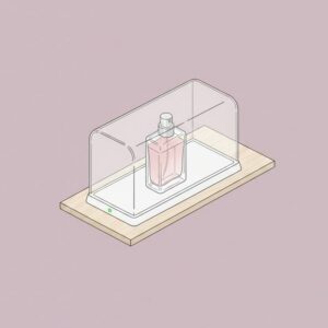 2. La vitrine comme écrin La sécurisation devient un argument de vente : « Ce parfum est si précieux qu’il est exposé sous vitrine éclairée. »